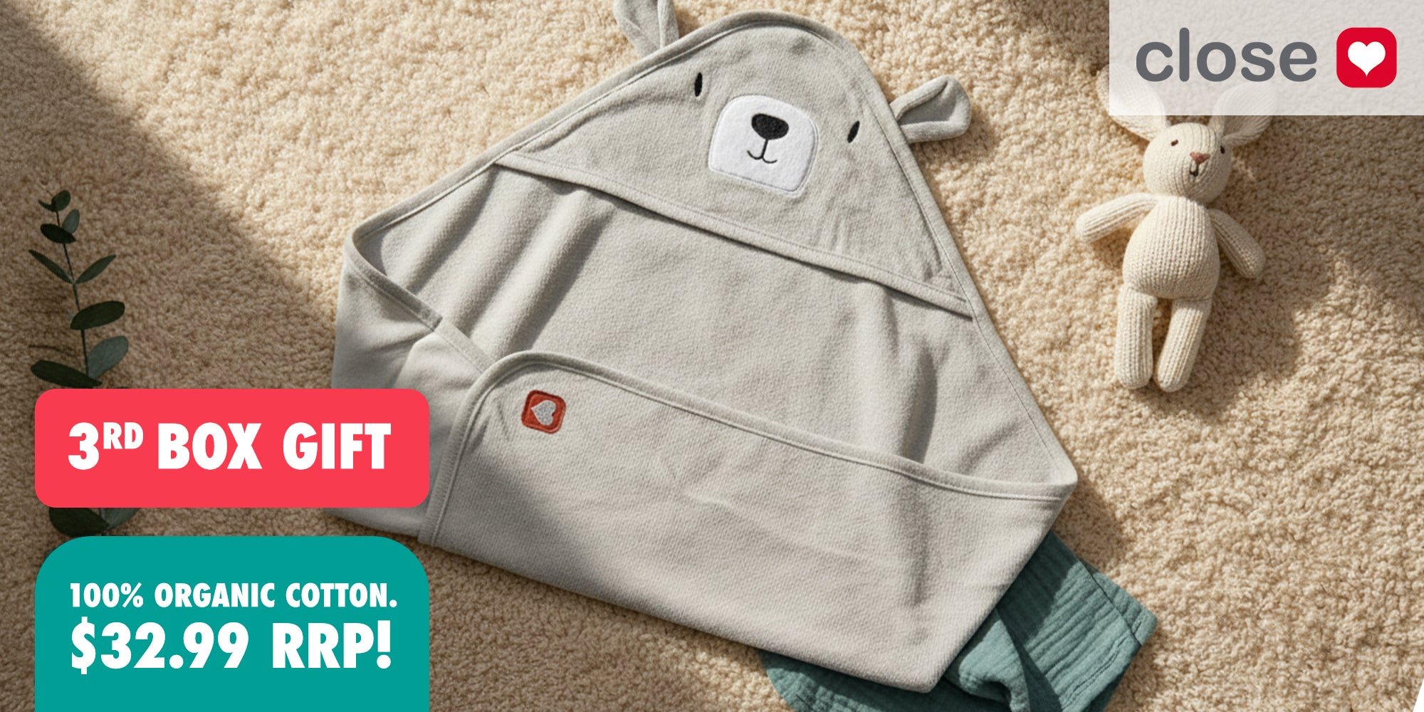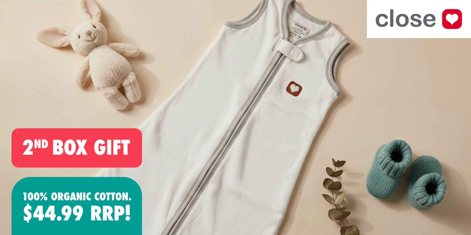 Now including a 100% organic cotton onesie from Close Parent!