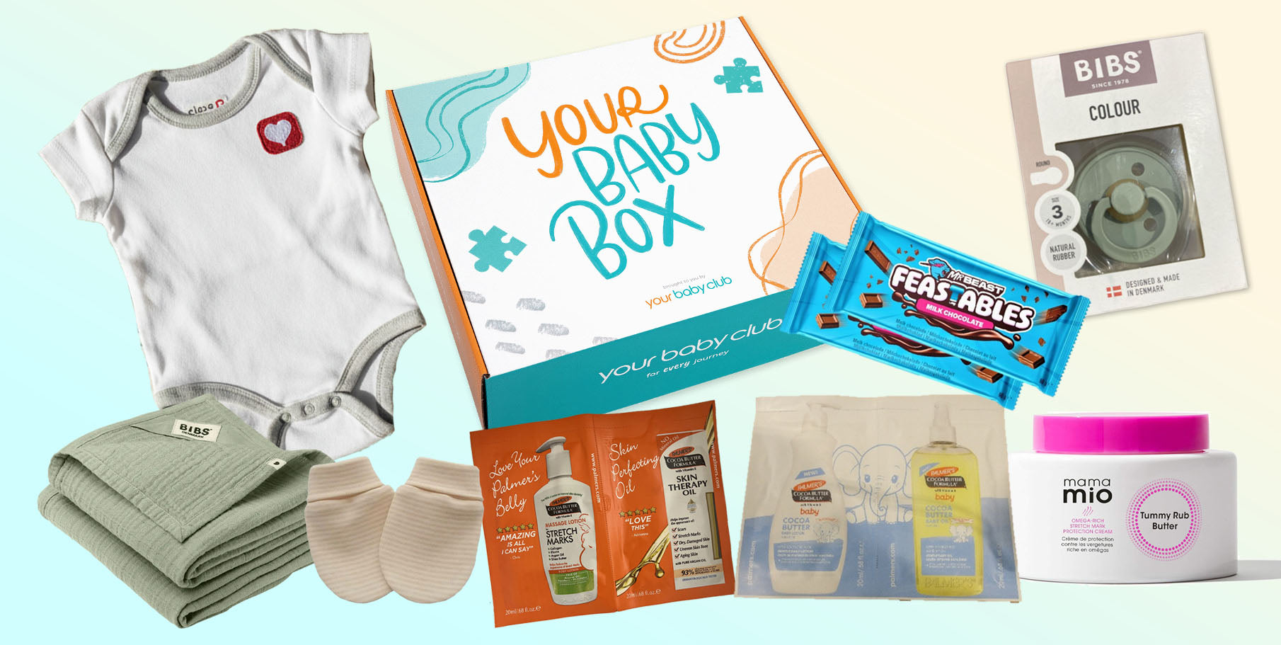 Pay shipping today and unlock your first box, packed with baby must-haves and mom treats